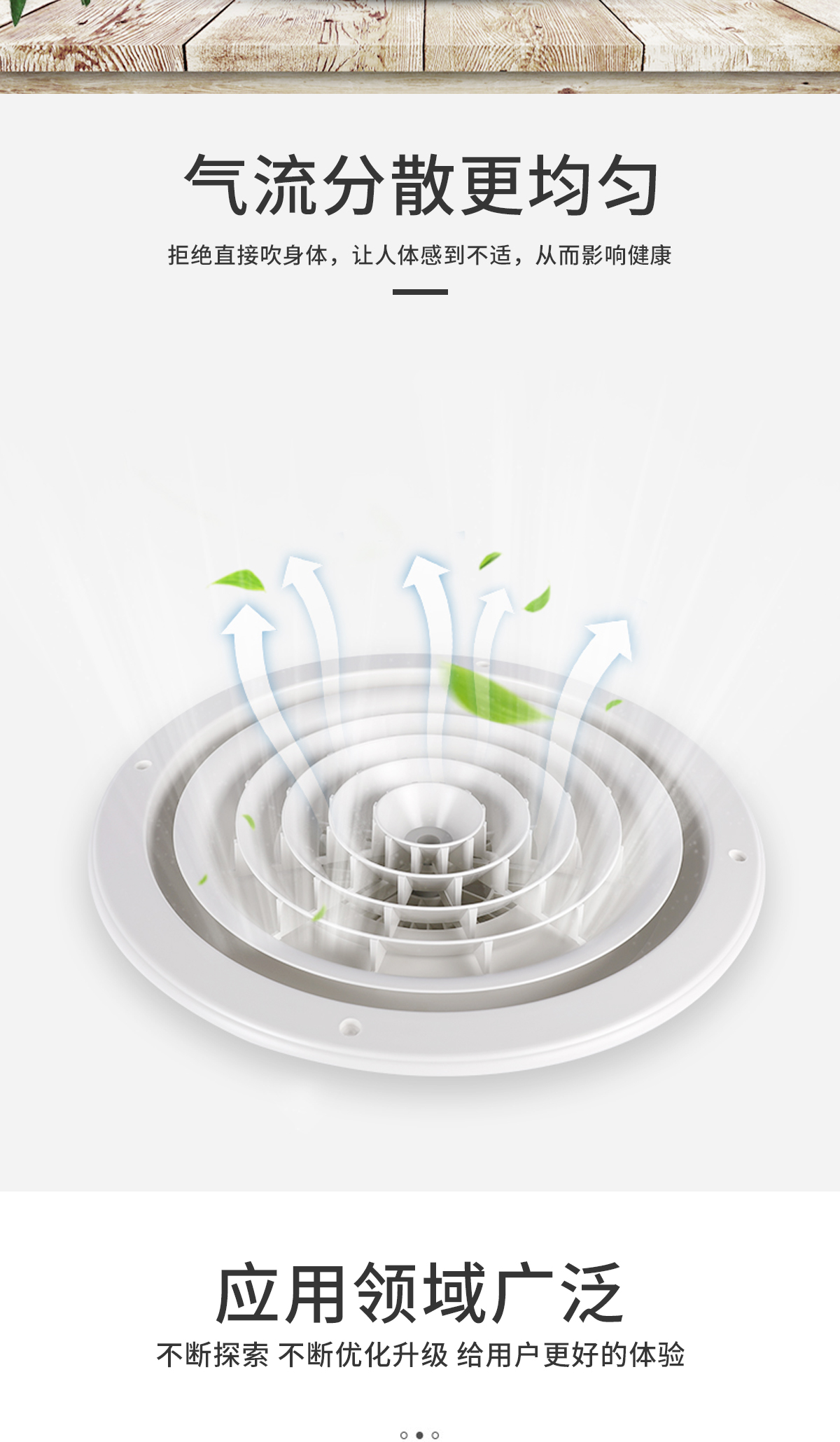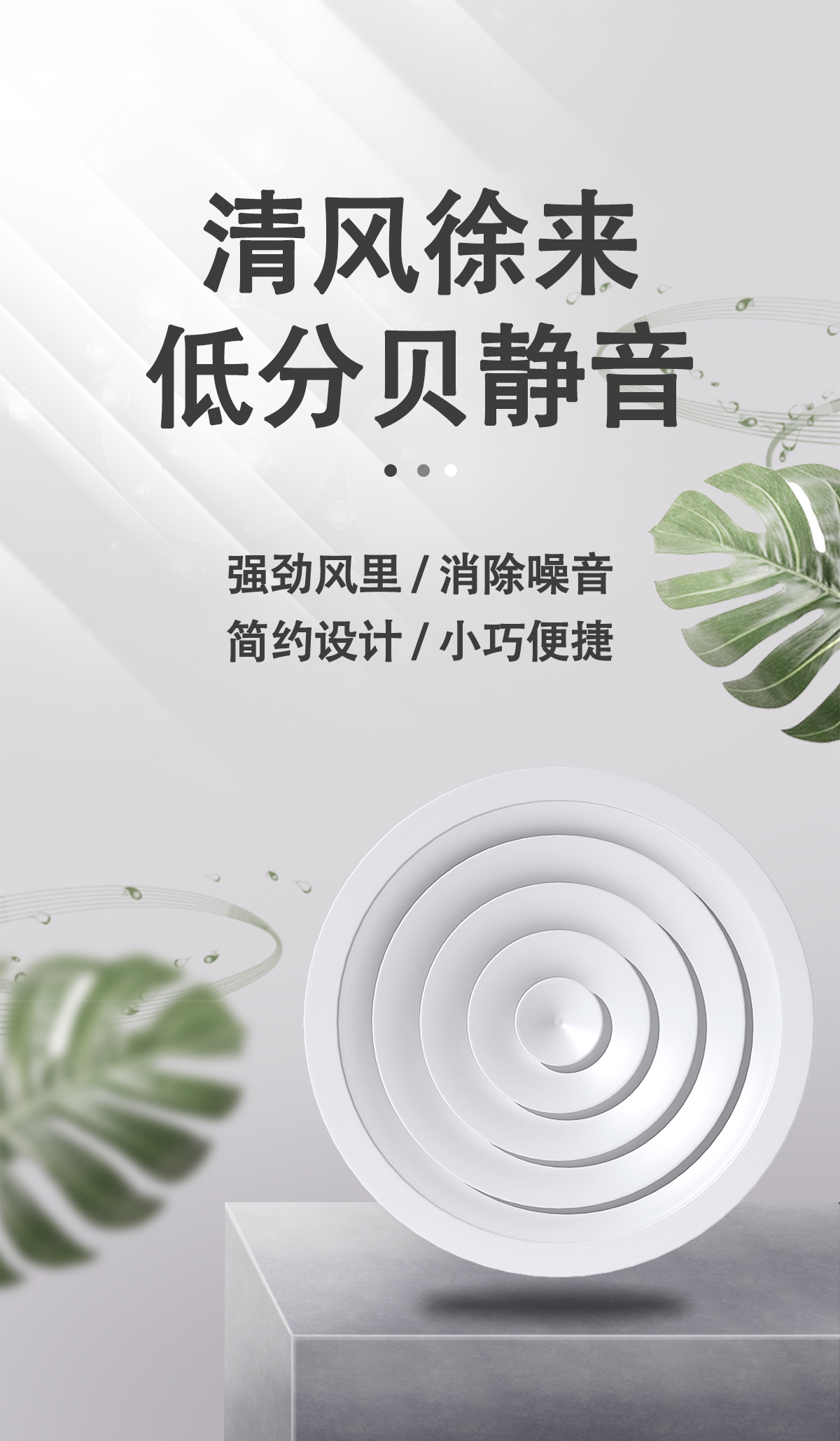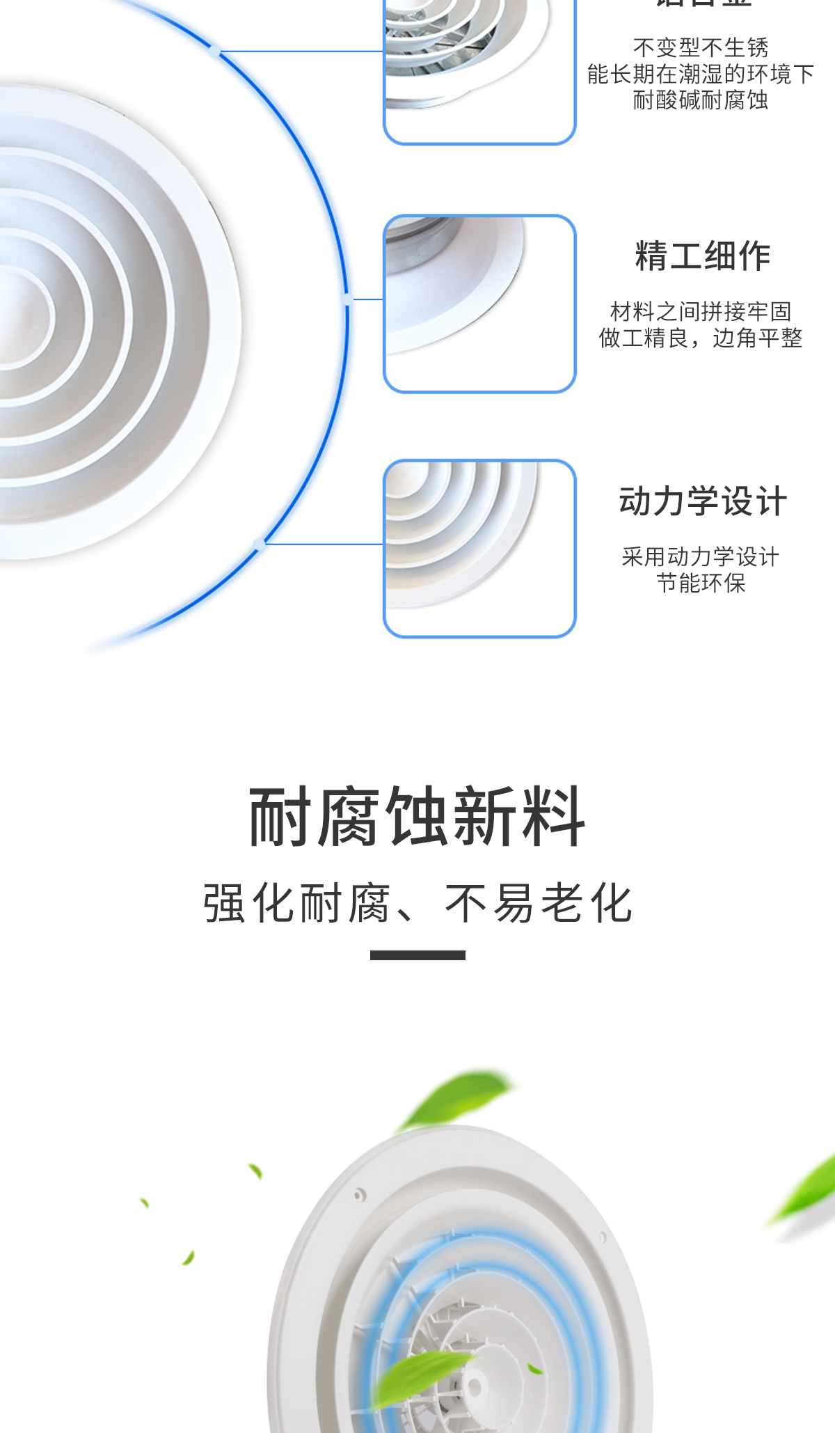 用于冷暖送風,常安裝在頂棚上 吹出氣流呈貼附(平送)型 可以供給較大的風量 在給定風量范圍內擴散半徑可大小變化 可與圓形對開調節(jié)閥配套使用