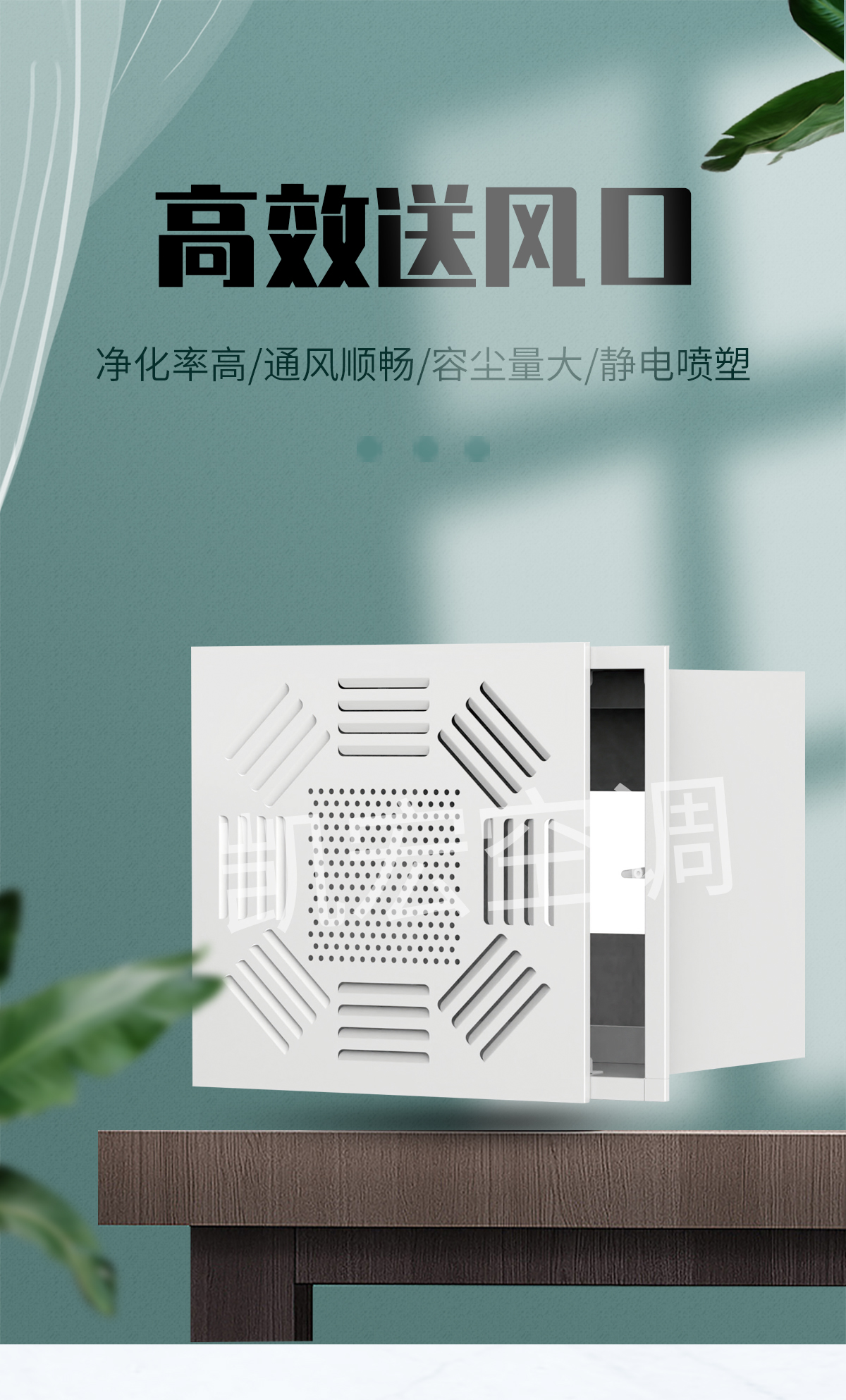 高效送風(fēng)口適合各種潔凈級(jí)別和多種維護(hù)結(jié)構(gòu)的潔凈室,是千級(jí)、萬級(jí)、十萬級(jí)凈化空調(diào)系統(tǒng)較為理想的終端過濾裝置 高效送風(fēng)口包含靜壓箱,散流板,高效過濾器,與風(fēng)管的接口可為頂接或側(cè)接